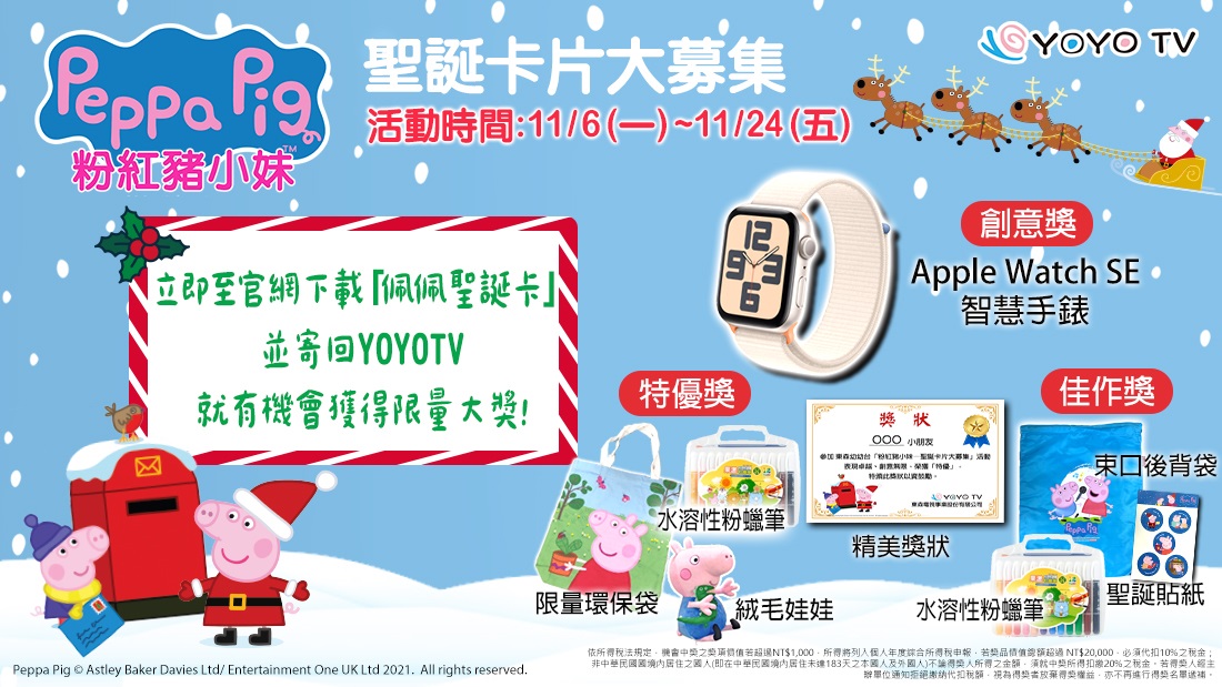 就有機會獲得Apple Watch SE智慧手錶及粉紅豬小妹限量大獎!